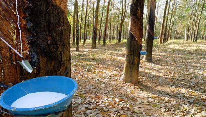 Natural Rubber (NR) is produced from the crop harvested from rubber plantations both in the latex form as well as in the field coagulam form. Latex is a milky white dispersion of rubber in water and field coagulam is the auto coagulated latex on the tapping panel (tree lace) and the collection cups (shell scrap and cuplumps).